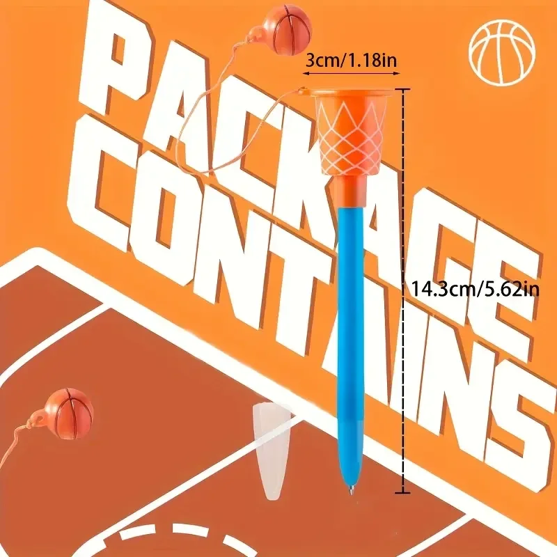 2 stuks Basketbalpennen - Kunststof sportthema pen met klik-dop, medium punt, ronde vorm