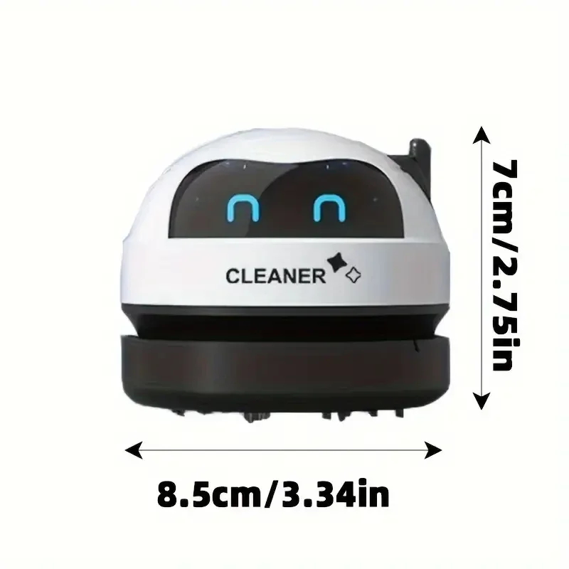 Een mini-bureau stofzuiger, draagbaar en klein, aangedreven door een oplaadbare USB-batterij, met een schattig robotontwerp voor het stil reinigen van bureaus, het opzuigen van kleine items zoals gumresten en vuil, perfect als cadeau - pas op! niet geschikt om water op te zuigen
